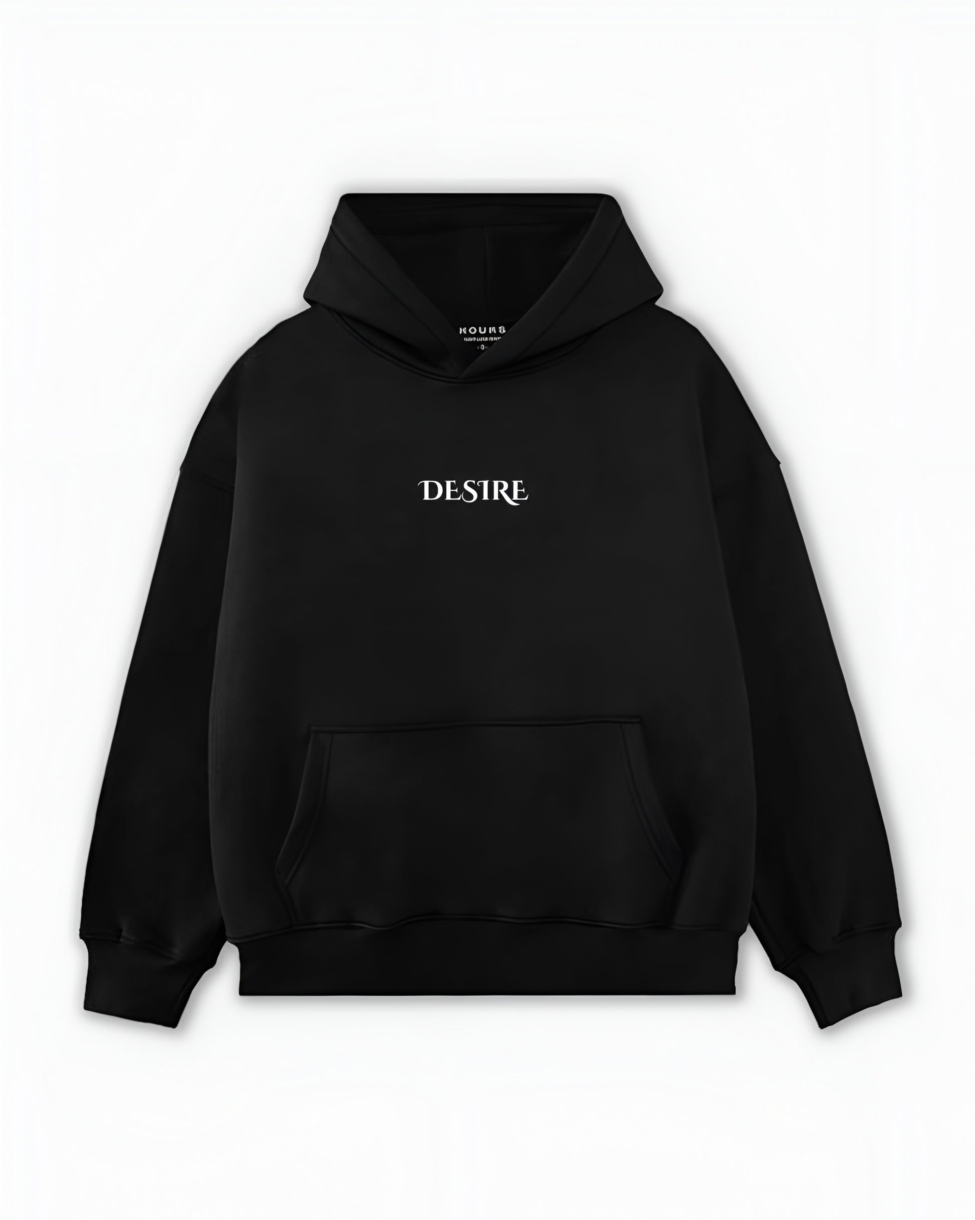 Stay effortlessly stylish with our Black “DESIRE” Hoodie, designed for comfort and bold minimalism. Crafted from premium quality cotton blend fabric, this hoodie offers a soft, cozy feel perfect for everyday wear. Featuring a clean black base with a striking white “DESIRE” print at the chest, it makes a statement without being over the top. The relaxed fit, spacious kangaroo pocket, and adjustable hood give you both practicality and streetwear edge.